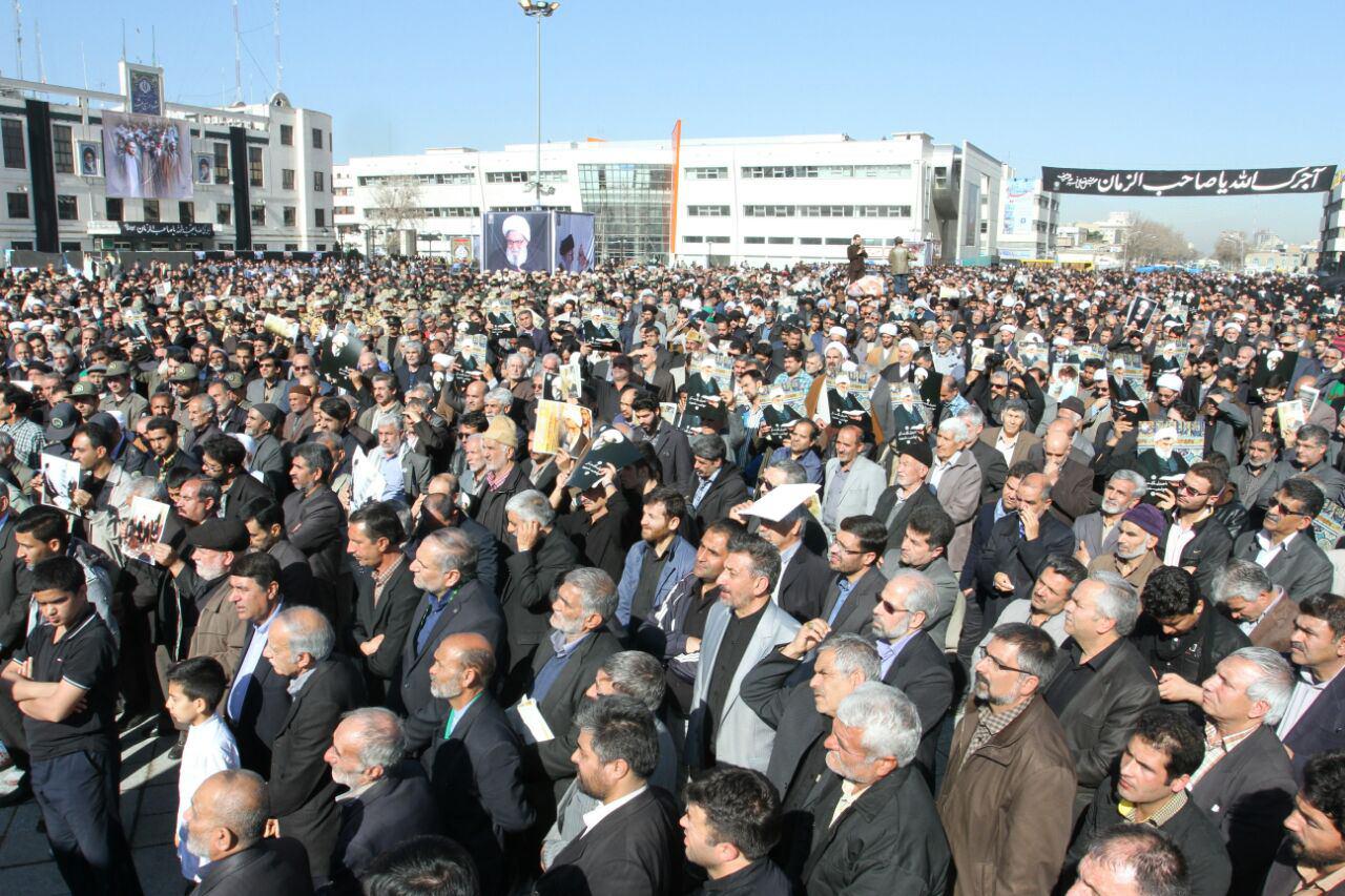 • تصاویر آیت الله واعظ طبسی در دستان مردم انقلابی شهر مشهد حمل می شود.