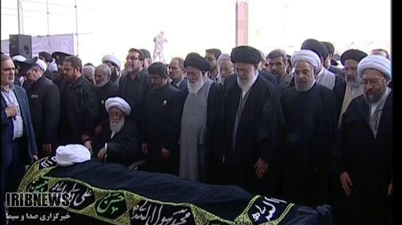 حضرت آیت الله خامنه ای رهبر معظم انقلاب اسلامی بر پیکر آیت الله واعظ طبسی نماز خواندند .