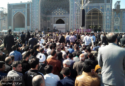 • صحن جامع رضوی مملو از جمعیت است و سوگواران هم اکنون در حال قرائت دسته جمعی زیارتنامه امین الله هستند .