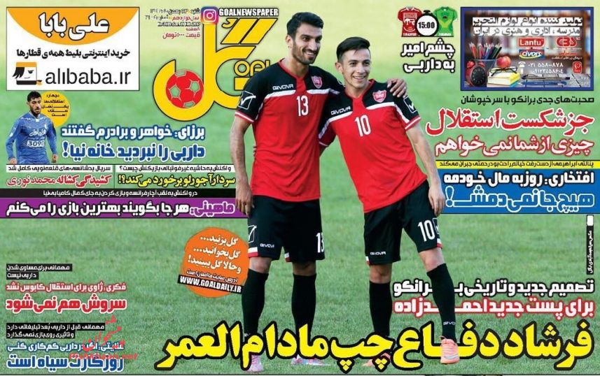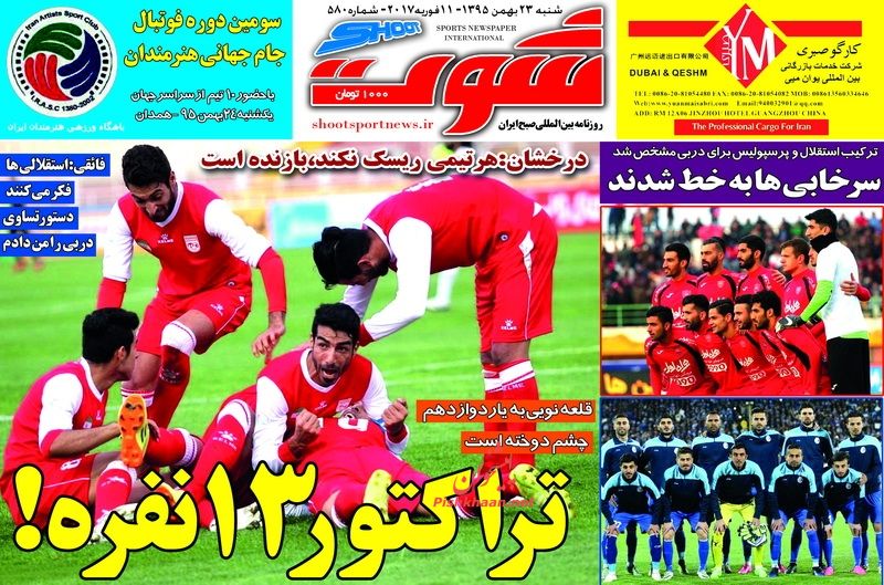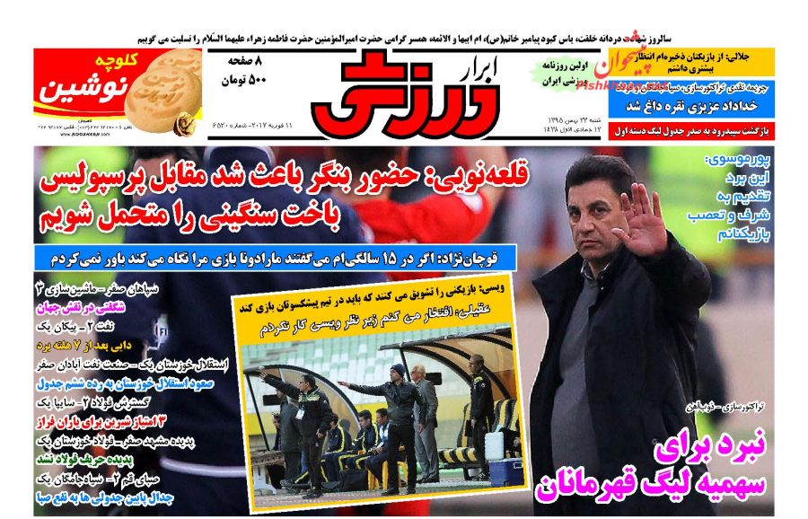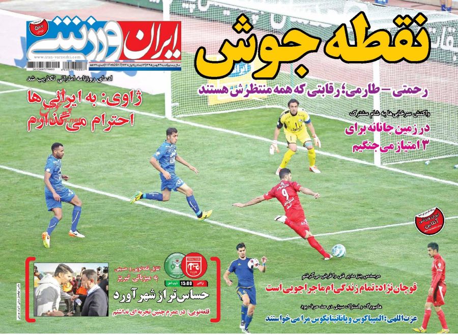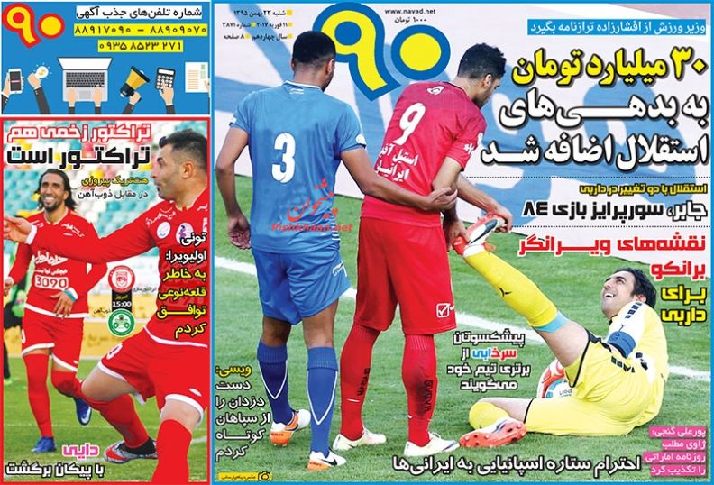 ترکیب احتمالی سرخابی ها در دربی 84 پایتخت ، زیدان بهترین سرمربی جهان در سال 2016 و.... در مدار چند درجه ورزشی امروز می خوانید .