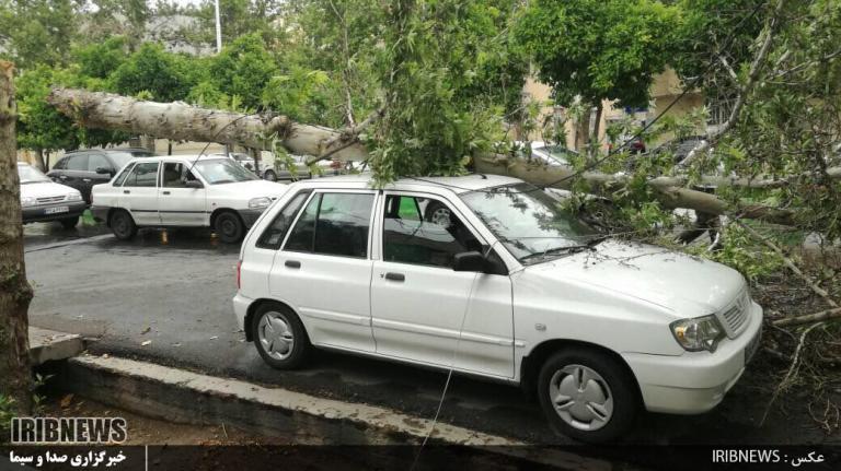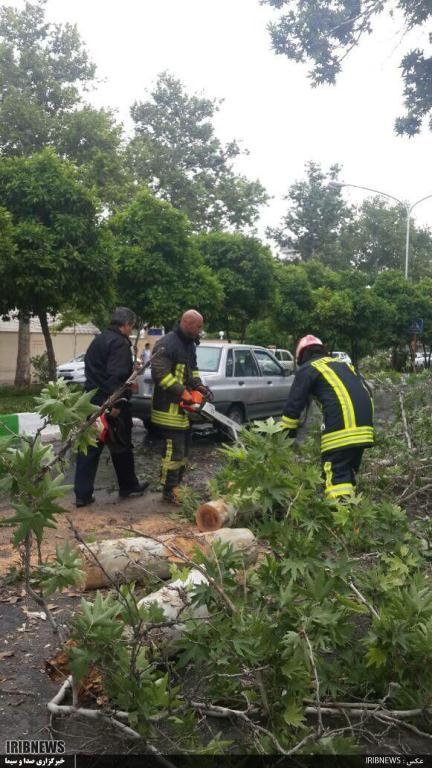 تندباد در شیراز و قطع درخت در خیابان ارم