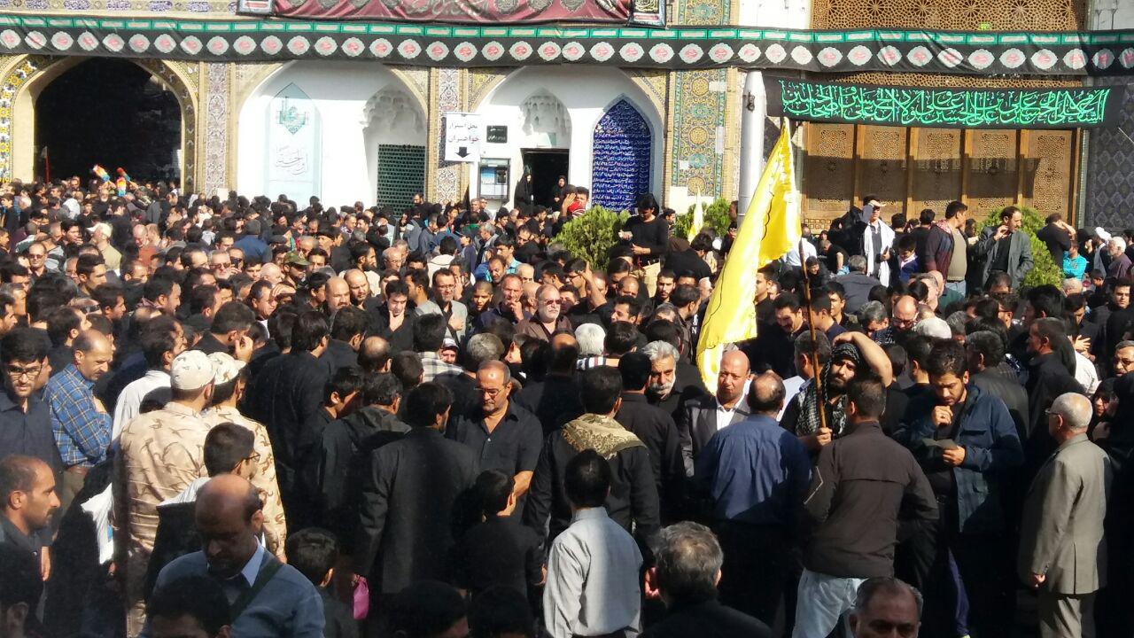 عزاداران حسینی دیشب و امروز مصادف با اربعین حسینی درقالب دستجات سینه زن و زنجیر زن با حضور در صحن های اصلی ، مصلا و باغ توتی به سوگواری پرداختند و به سرو سینه زدنند .