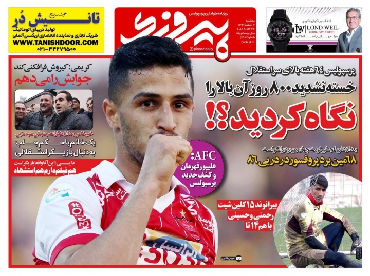 در پیشخوان امروز ، صفحه نخست روزنامه های ورزشی دوشنبه 7 اسفند ماه 1396 را مشاهده می کنید.