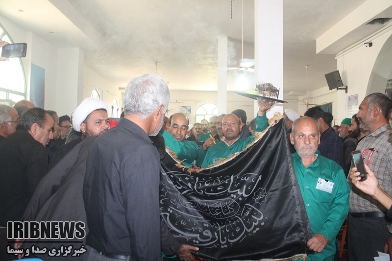 پرچم های متبرک حرم حضرت زینب و حضرت رقیه (س) در بین عزاداران بردسکن
