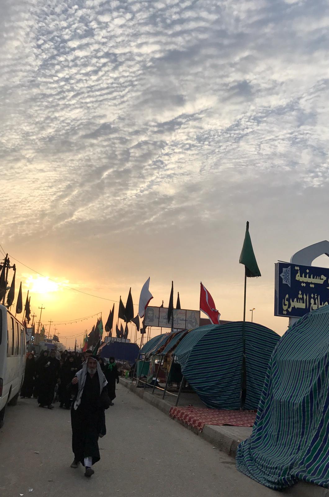 راهپیمایان اربعین حسینى با عبور از شهر دیوانیه وارد جاده عَکف به سومر میشوند و به سمت حله پیش میروند.