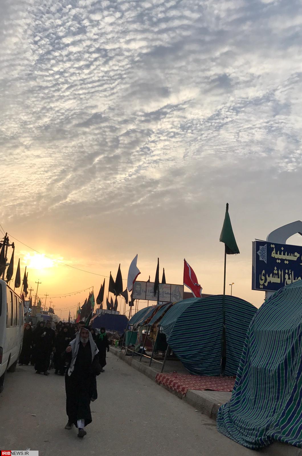 به گزارش خبرنگار خبرگزاری صدا و سیما، خیابان حاشیه اى شهر مملو از جمعیت زوار پیاده و موکب داران عراقى است.