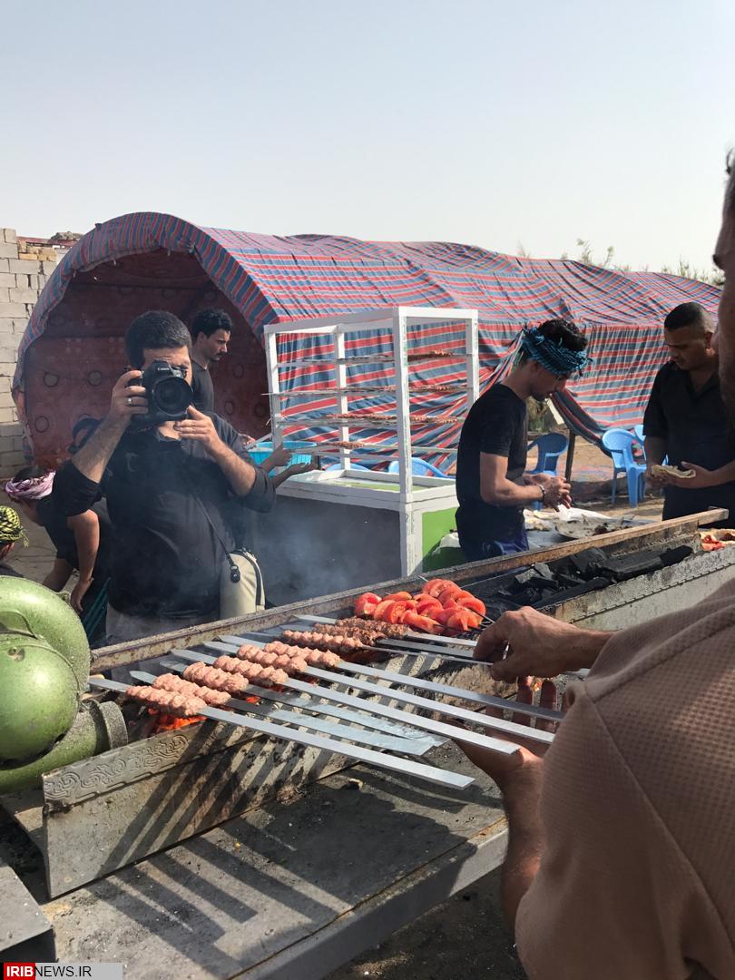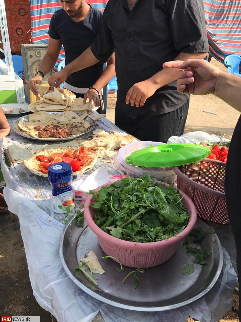 انواع چاى خرما غذا و میوهها در این مسیر براى مسافران کربلا مهیاست؛ غذاهایى با گوشت تازه که شامل کباب و نان تازه و چلو گوشت است و میوههایى که از پرتغال تا هندوانه را شامل میشود.