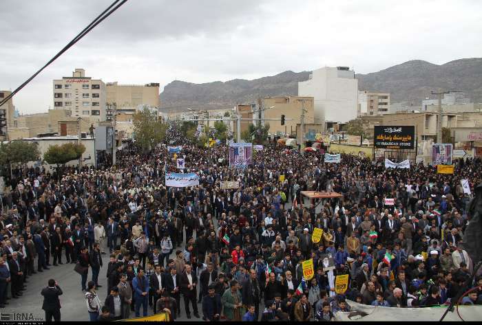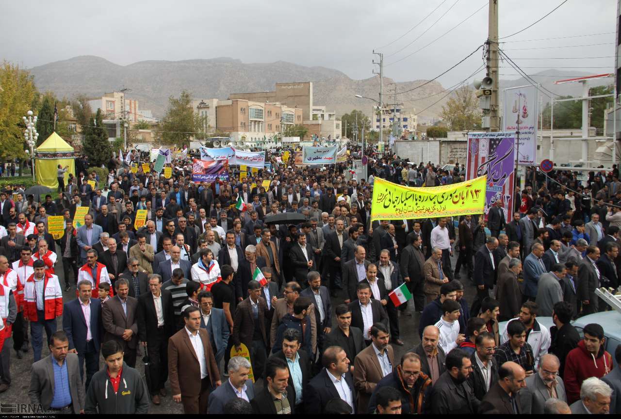 در گرامیداشت این روز مردم ایلام همگام باسراسرکشور باشعار "مرگ بر آمریکا" خشم و انزجار خودرا از استکبار جهانی به ویژه شیطان بزرگ آمریکا نشان دادند.