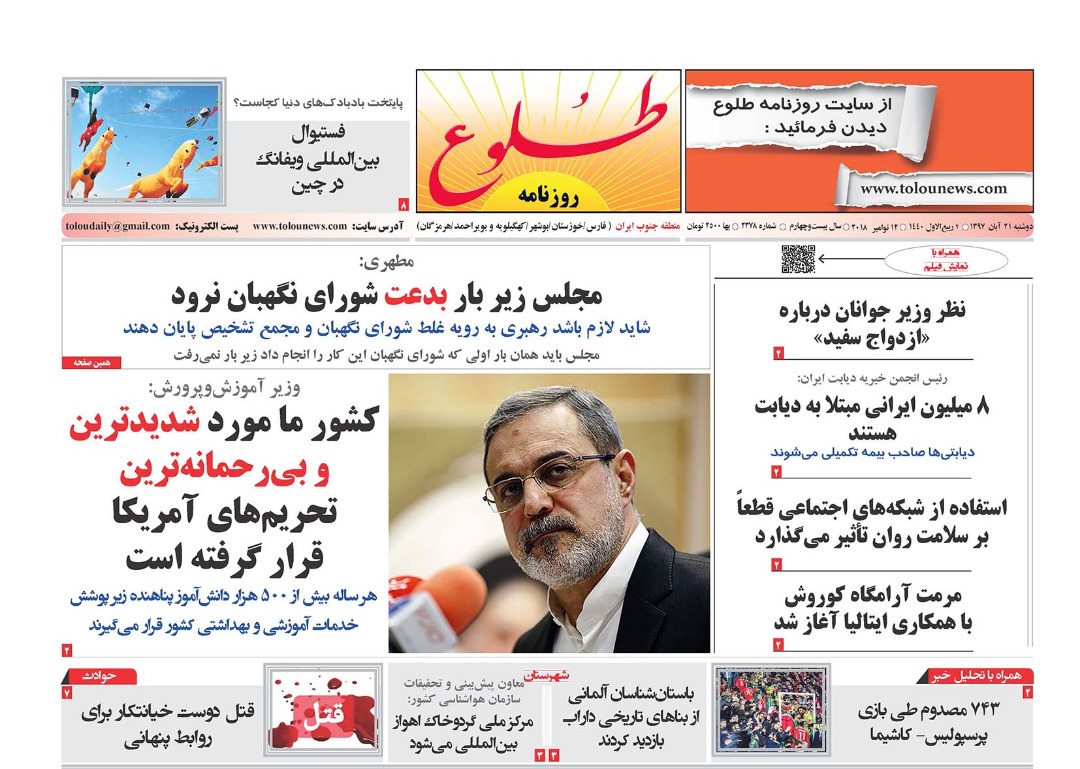 به گزارش خبرگزاری صدا و سیما، مرکز فارس، صفحات نخست روزنامه‌های امروز دوشنبه بیستم آبان فارس را ببینید.