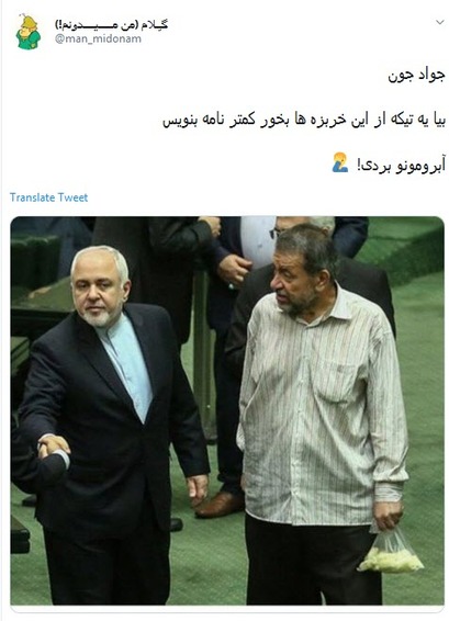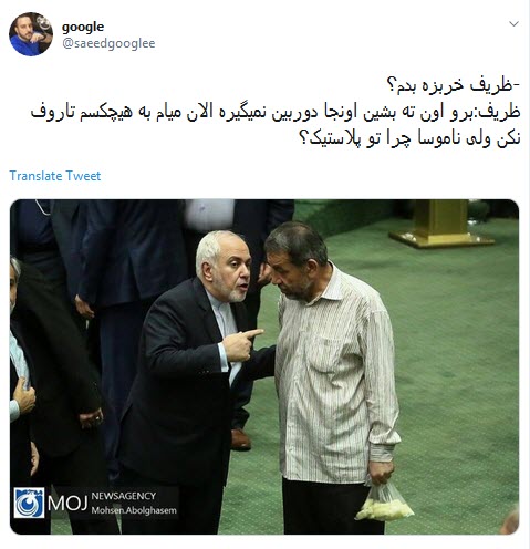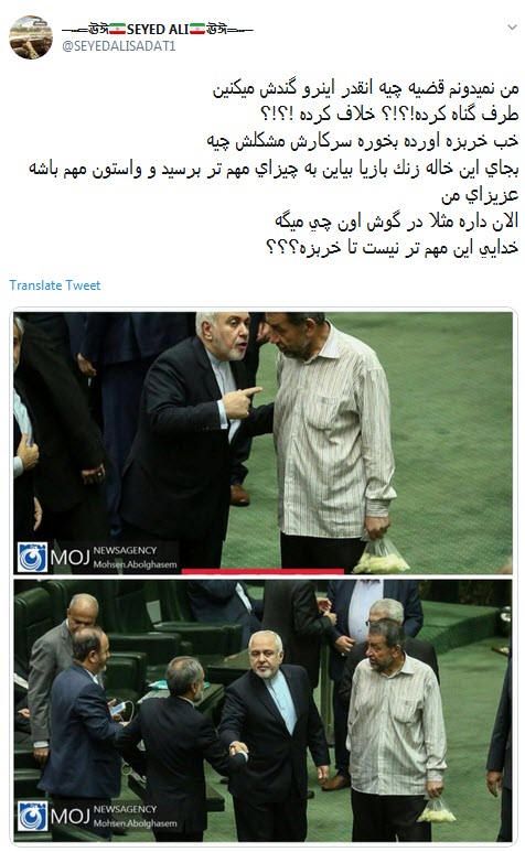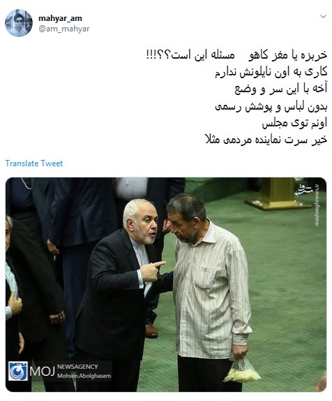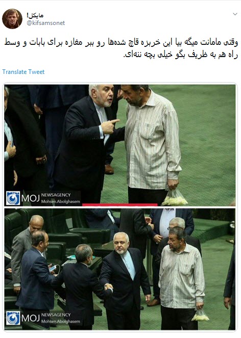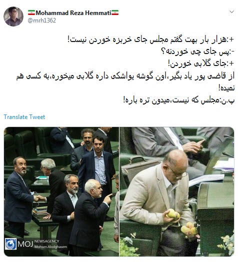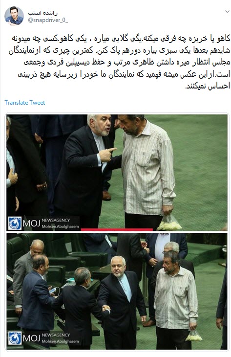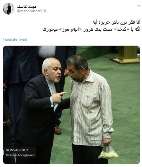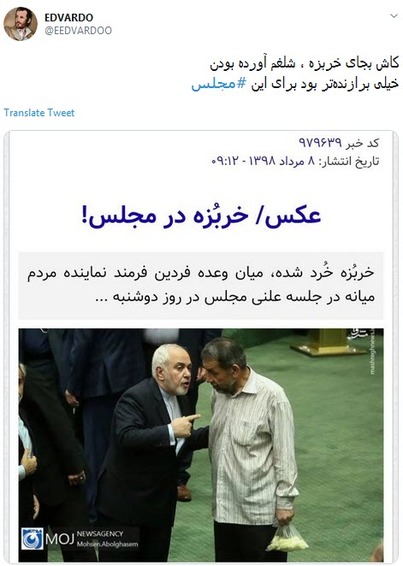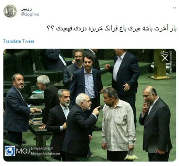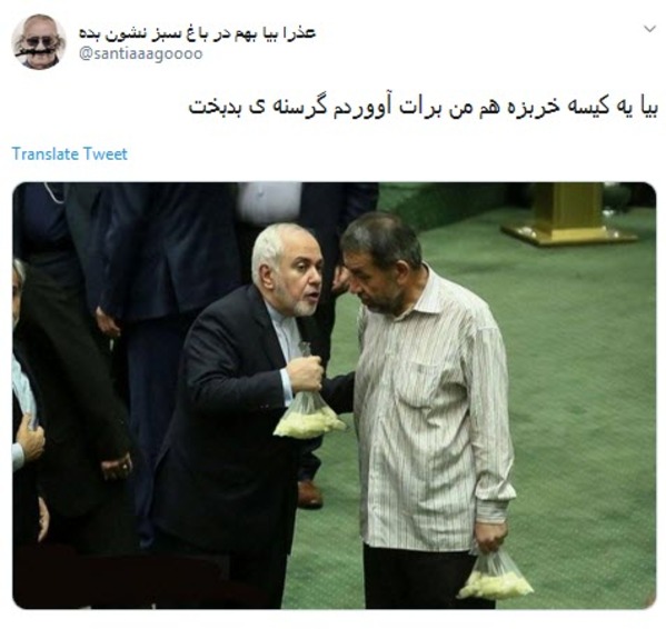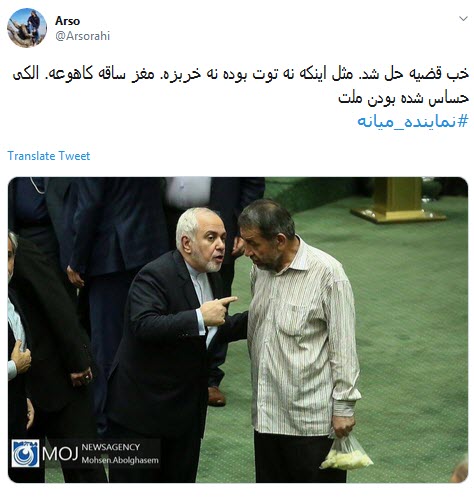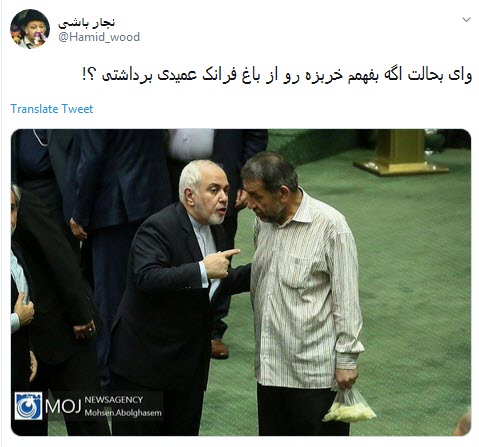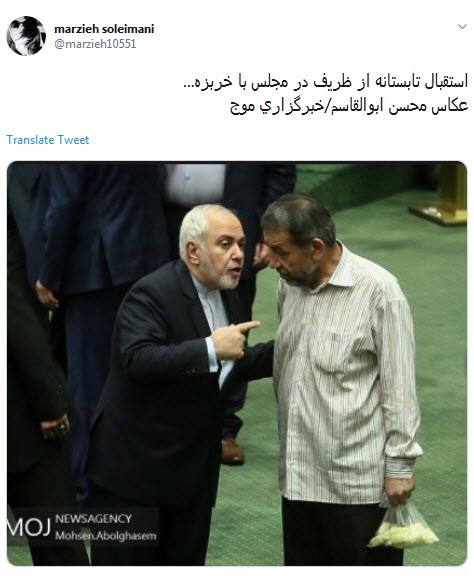 به گزارش سرويس فضاي مجازي خبرگزاري صدا و سيما ؛ دو روز پیش انتشار عکسی از فردین فرمند نماینده مردم میانه با لباسهای بهم ریخته در مجلس شورای اسلامی در کنار "محمدجواد ظریف" وزیر امور خارجه در حالی که در دست او یک کیسه حاوی خربزه قاچ شده به چشم میخورد، در فضای مجازی بحثبرانگیز شد و حواشی زیادی را به وجود آورد.