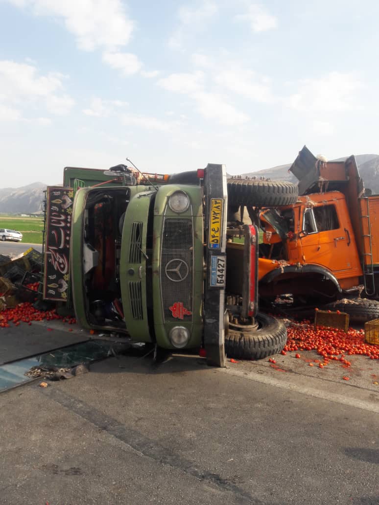 به گزارش خبرگزاری صدا و سیما، مرکز فارس، سروان انصاری کارشناس پلیس راه سعادتشهر گفت: در حادثه برخورد دو کامیون در جاده شیراز اصفهان در بیست کیلومتری سعادتشهر یکی از رانندگان مجروح و به بیمارستان منتقل شد. انصاری افزود: یکی از این کامیونها حامل گوجه فرنگی، و دیگری حامل ضایعات مرغ بود . وی علت این حادثه را گردش به چپ یکی از کامیونها در حین دور زدن اعلام کرد.