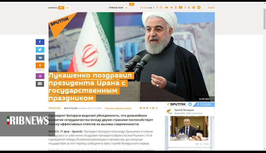 خبرگزاری اسپوتنیک در حساب کاربری خود در فیس بوک، تصاویر سخنرانی حسن روحانی رئیس جمهور کشورمان را در مراسم سالگرد پیروزی انقلاب در میدان آزادی تهران به صورت زنده پخش و این تیتر را منتشر کرد: «راهپیمایی پرشور در تهران به مناسبت چهل و یکمین سالگرد پیروزی».