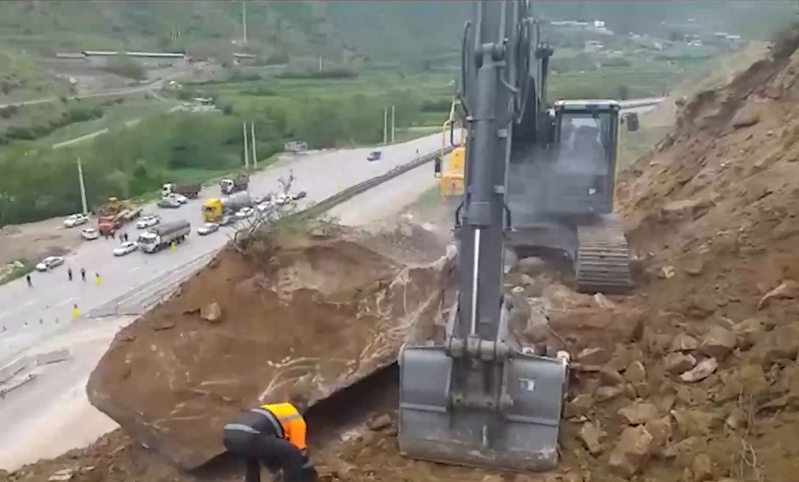 ۱۰ دستگاه بیل زنجیری، لودر و کامیون کمپرسی برای بازگشایی مسیر خطیرکوه در جاده سوادکوه بکارگیری شده است.