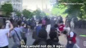 ترامپ گفت: «آن، مانند چاقویی بود که (به راحتی) کره را میبُرد. آنها (نیروهای پلیس) به راحتی از میان آنها (معترضان) گذشته (و آنها را پراکنده ساختند)؛ بوم (صدای انفجار).»
