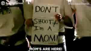 سپس تصاویری از زنانی پخش شد که سپری انسانی در مقابل نیروهای فدرال در شهر پورتلند تشکیل داده بودند تا از معترضان مردمی در خیابانهای این شهر حفاظت کنند. این زنان یکصدا شعار میدادند: «مأموران فدرال! فاصلهِ خود را از ما حفظ کنید، زیرا اکنون مادران اینجا هستند.»