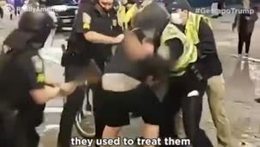ترامپ در بخشی از یک سخنرانی دیگر، در حالی که افسران پلیس آمریکایی پشت سرِ او ایستاده بودند، گفت: «وقتی شما به این اراذل و اوباش نگاه میکنید که در حال (بازداشت و) انداخته شدن به پشت یک خودرو وَنِ پلیس هستند، این یک برخورد سخت است. من گفتم: لطفاً بیش از حد (با معترضان) نرم و لطیف نباشید.»