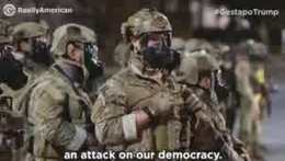 در بخش پایانی این گزارش تصویری، هَشتَگِ «ترامپِ گشتاپو» پخش میشود. سپس روی تصویر نوشته میشود: «به این کابوس پایان دهید.»