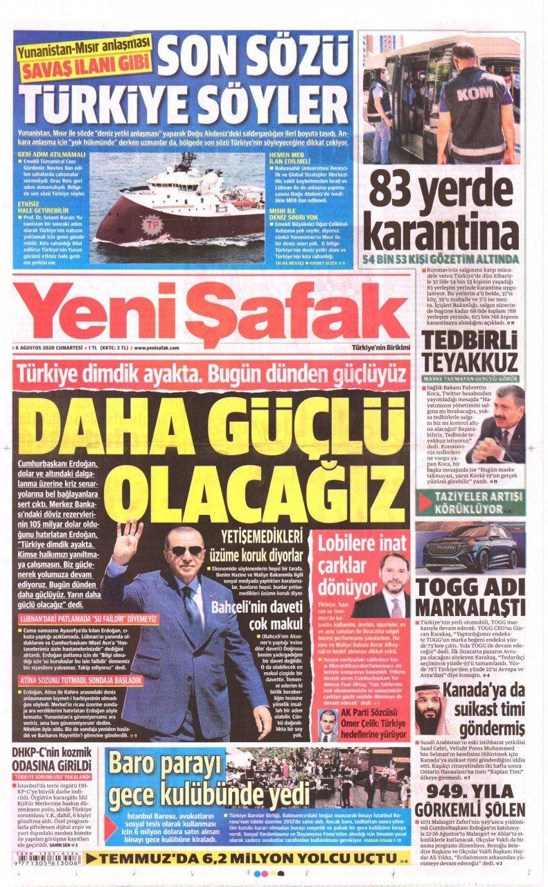 روزنامه ینی شفقتفاهم نامه یونان و مصر بمنزله اعلان جنگ است، حرف آخر را ترکیه میزند