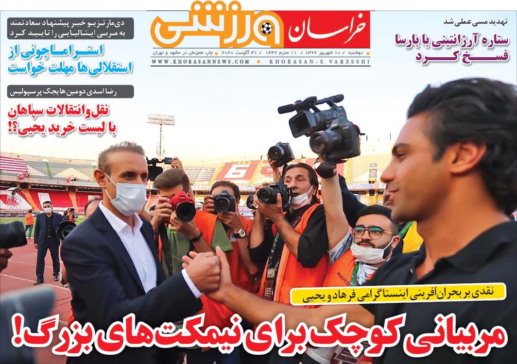به گزارش خبرگزاری صداوسیما استعفای فرهاد مجیدی از سرمربیگری استقلال و واکنش یحیی گل محمدی به اتفاقات اخیر در فضای مجازی مهمترین تیتر روزنامه های ورزشی امروز است.