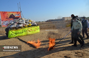 گروه عکس خبرگزاری صدا و سیما؛ با اشراف اطلاعاتی ماموران نیروی انتظامی، بیش از ۲ تن و ۷۰۰ کیلوگرم انواع مواد مخدر کشف شد که امروز مواد غیر دارویی آن به آتش کشیده شد. این مواد از نوع حشیش، شیشه، گل، مواد صنعتی و قرصهای روان گردان است. دبیر شورای هماهنگی مبارزه با مواد مخدر استان هم گفت: قاچاقچیان مواد مخدر اگر میتوانستند این مواد غیر دارویی را به مقصد برسانند حدود ۱۶ میلیارد تومان منفعت میکردند و بلای جان ۱ میلیون و ۳۰۰ هزار نفر میشد. ارسطو ترکمان منش با بیان اینکه ۷۵ درصد مواد مخدر کشف شده در عرصه دریا است افزود: همجواری با کشورهای همسایه موجب شده استان بوشهر همواره مورد طمع سودجویان و سوداگران مرگ برای حمل و نقل و ترانزیت مواد مخدر است.