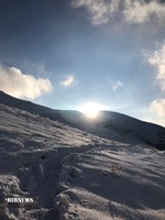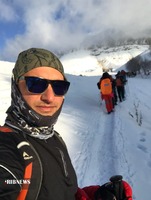 پس از ۳۰ دقیقه گروه آقایان باویلی و قمی اعلام کردند که تجهیزات کامل کوهپیمایی (گتر/ یخ شکن و باتون) را بپوشیم به سر قدمی آقای قمی به سمت راست پیچیدیم و البته برف کوبی برای مسیری که پاکوب نداشت و در برخی نقاط ارتفاع برف در آن به ۵۰ سانتی متر میرسید همینطور که از دشت ارتفاع میگرفتیم در سمت چپ و پشت سرمان مسیر صعود به قله چشمه شاهی را با کوهنوردانی که قصد صعود به این قله را داشتند کوچک و کوچکتر میدیدیم به بالای شیب که رسیدیم اقای باویلی اعلام استراحت کردند همانطور که میدانید حرکت در برف بسیار سخت و انرژی بر است.