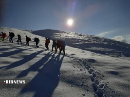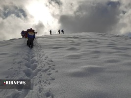 گروه همه به فاصله ۱/۵ متر با سرعت متناسب بالا میرفتیم و از پاکوب سرقدم و نفرات جلو برای بالا رفتن استفاده میکردیم به دلیل فعالیت شدید بدنی دمای بدنمان بالا بود و در آن سرما حتی عرق هم میکردیم برای تامین آب و الکترولیت بدنمان هر ۱۵ دقیقه یک بار آب مینوشیدیم آسمان نیمه ابری بود و در مناطق مه آلود از میان ابرها اشعه خورشید به مسیر میتابید و صحنههای بی بدیل را ایجاد میکرد دوستان در گروه آواز میخواندن و این نوای خوش انرژی مضاعفی به ما میداد و در برخی مقاطع گروه هم همراهی میکردند.