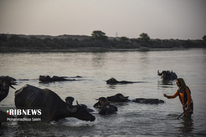 گاومیش آباد محلهای در جنوب شرقی حاشیه شهر اهواز است و یکی از سرگرمیهای کودکان این منطقه در روزهای داغ تابستان با دمای حدود ۵۰ درجه بازی و شنا کردن با گاومیشهای خود در کنار رودخانه کارون است، و یکی از الزامات زیست محیطی مهم گاومیش ها، برای ادامه بقا، زندگی در کنار آب و خنک نگه داشتن دمای بدن آنهاست و همین امر سبب شده است تا اکثر مردم این منطقه محروم از طریق پرورش گاومیشها به امرار معاش بپردازند