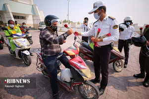 در این مانور برای نهادینه شدن فرهنگ استفاده از کلاه ایمنی، به شرکت کنندگان موتورسوار کلاه ایمنی و گل اهدا شد.