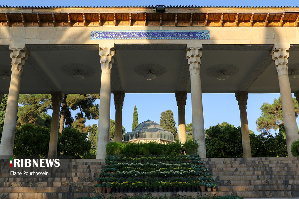 به گزارش گروه عکس خبرگزاری صدا و سیما؛ خواجه شمس الدین محمد بن بهاءالدّین محمد حافظ شیرازی (زاده ۷۲۷ (قمری) – درگذشته ۷۹۲ (قمری)، معروف به لسان الغیب، شاعر بزرگ سدهٔ هشتم ایران (برابر قرن چهاردهم میلادی) و یکی از سخنوران نامی جهان است. بیشتر شعرهای او غزل هستند که به غزلیات حافظ شهرت دارند، حافظ در شیراز دیده به جهان گشود. پدرش بهاءالدین، بازرگان و مادرش اهل کازرون بود، وی در دوران زندگی خود به شهرت عظیمی در سرتاسر ایران دست یافت و اشعار او به مناطقی دور دست همچون هند نیز راه یافت. تفکر حافظ عمیق و زنده پویا است. دیوان حافظ که مشتمل بر حدود ۵۰۰ غزل، چند قصیده، دو مثنوی، چندین قطعه و تعدادی رباعی است، تاکنون بیش از چهارصد بار به اشکال و شیوههای گوناگون، به زبان فارسی و دیگر زبانهای جهان به چاپ رسیده است، در قرون هجدهم و نوزدهم اشعار او به زبانهای اروپایی ترجمه شد و نام او به گونهای به محافل ادبی جهان غرب نیز راه یافت. گوته آلمانی تحت تاثیر شخصیت و اشعار حافظ قرار میگیرد و میگوید ’’ای کاش من در زمان حافظ بودم و او را درک میکردم ‘.