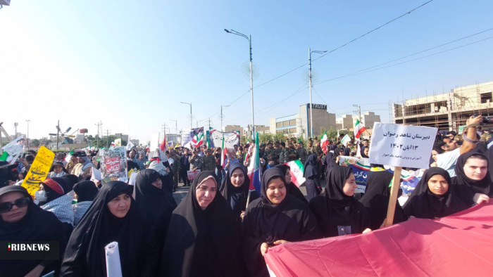 راهپیمایی روز ملی مبارزه با استکبار جهانی، صبح امروز (۱۳ آبان) در اهواز همزمان با سراسر کشور با شعار " نظم نو جهانی، با نسل آرمانی، در حال برگزاری است.