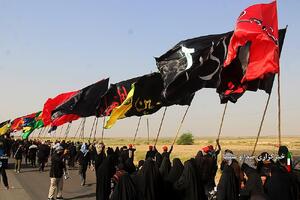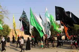 موکب ۳۰۰ نفری هیئت "عشاق الحسین" رامشیر حامل بیرق‌های حسینی با پای پیاده برای زیارت اربعین حسینی در جاده آبادان در حال حرکت به سمت کربلای معلی هستند. کاروان "عشاق الحسین" متشکل از زائران شهر‌های مختلف خوزستان، استان تهران و استان مازندران است که با پای پیاده مسیر ۷۰۰ کیلومتری را از شهر رامشیر طی خواهند کرد.