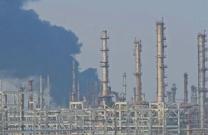 تصاویر نشان میدهد که دود از پالایشگاه به بیرون بلند میشود و صدای انفجار در شعاع هشت کیلومتری شنیده شده است.