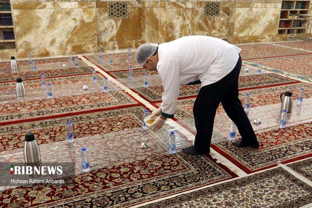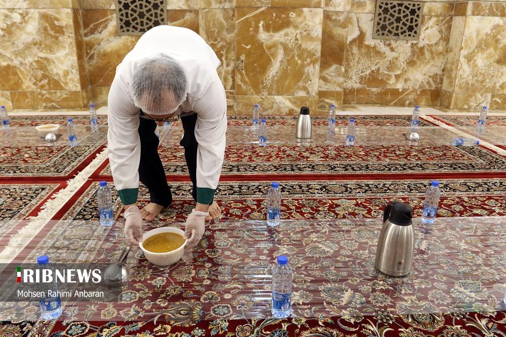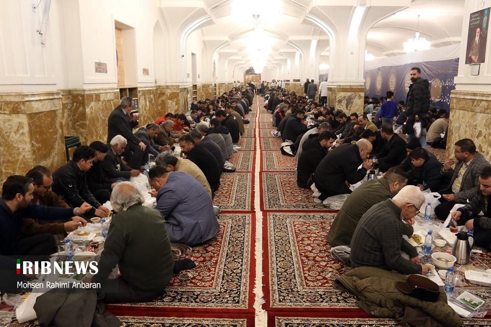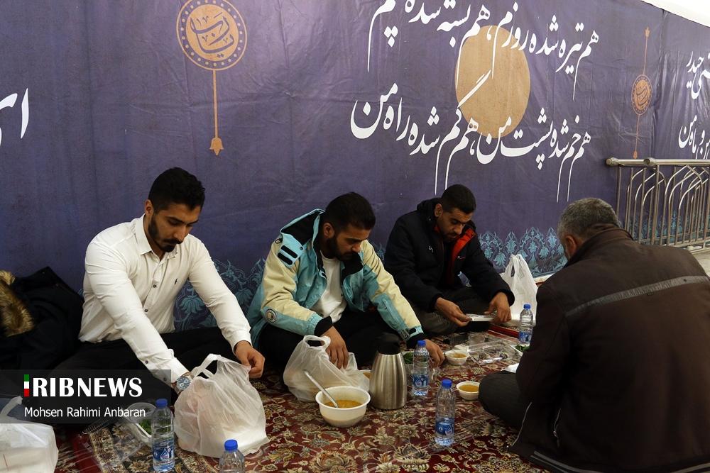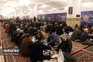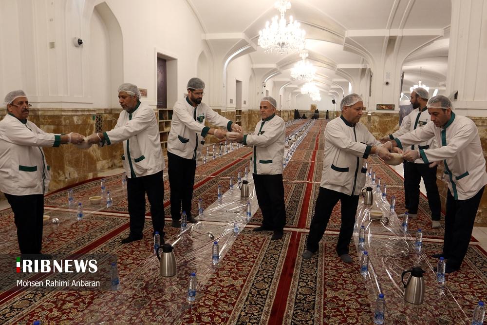 مطابق رسم هرساله، امسال هم زائران امام مهربانیها، میهمان ضیافت افطاری ساده در جوار بارگاه مطهر رضوی شدند .شایان ذکر است علاوه بر این مراسم همزمان با ماه مبارک رمضان خادمان آستان قدس رضوی دهها هزار بسته افطاری سبک را میان نمازگزاران در هنگامه نماز مغرب و عشا در صحن ها و رواق های محل برگزاری نماز در حرم مطهر رضوی توزیع میکنند