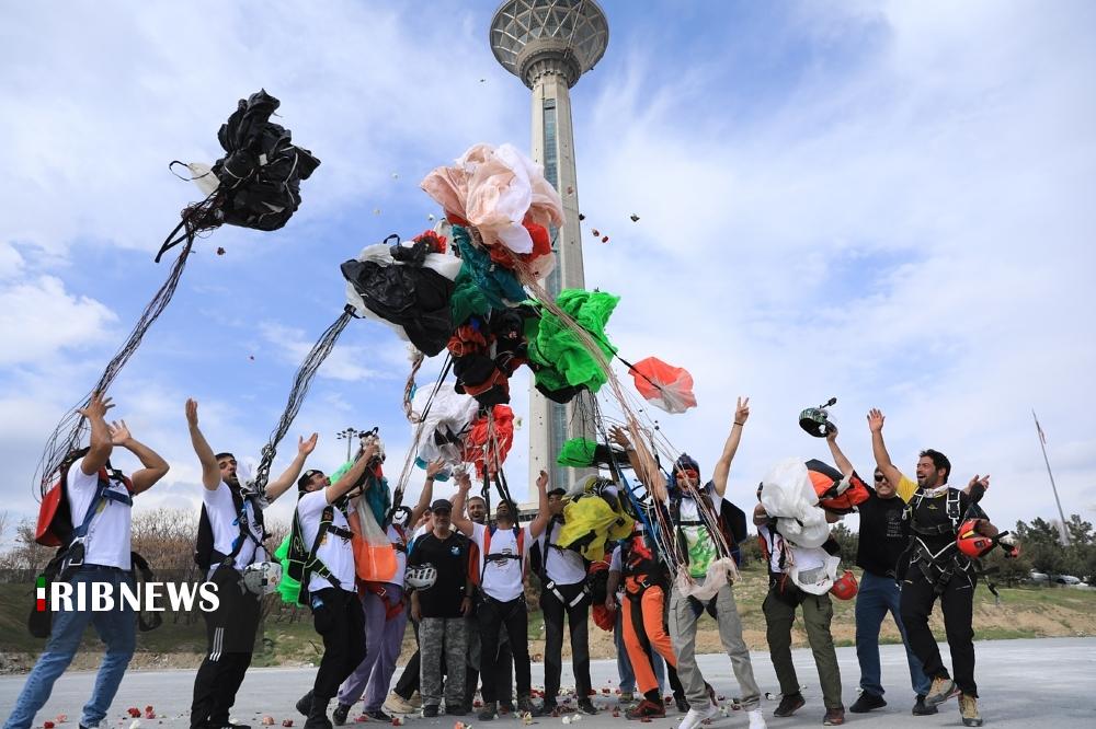 به مناسبت ۱۲ فروردین «روز جمهوری اسلامی» صبح امروز تعدادی از چتربازان اقدام به پرش بِیس جامپ از برج میلاد تهران کردند.