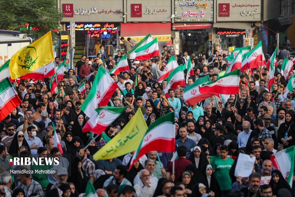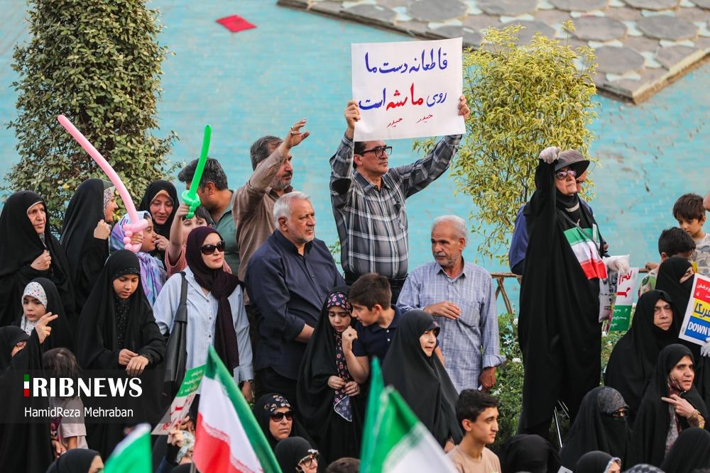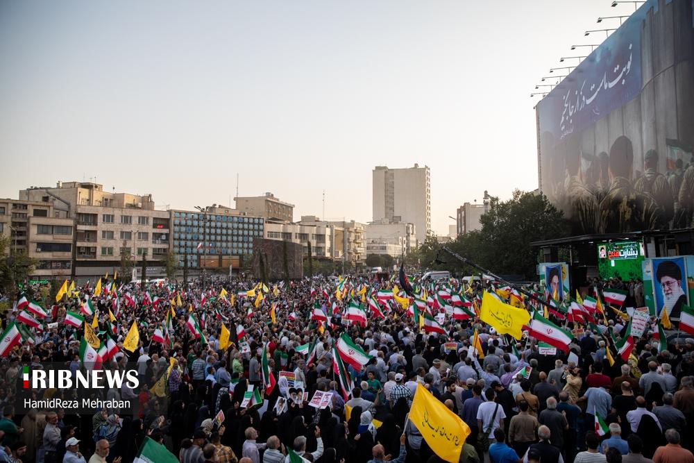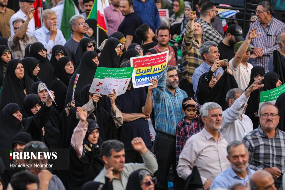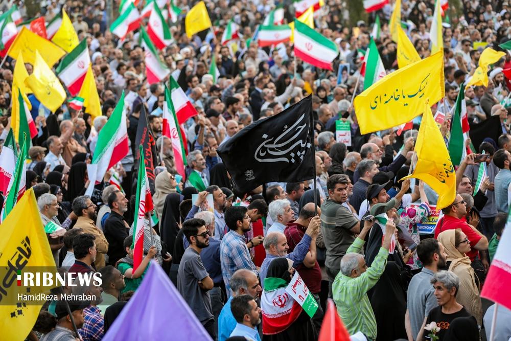 مردم شهیدپرور تهران عصر امروز ۳ تیرماه برای حمایت و تشکر از نیرو‌های مسلح در میدان انقلاب اسلامی تجمع کردند. عکاس: حمیدرضا مهربان