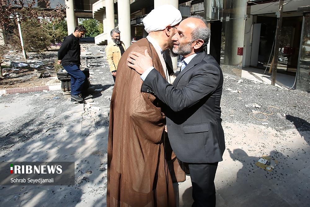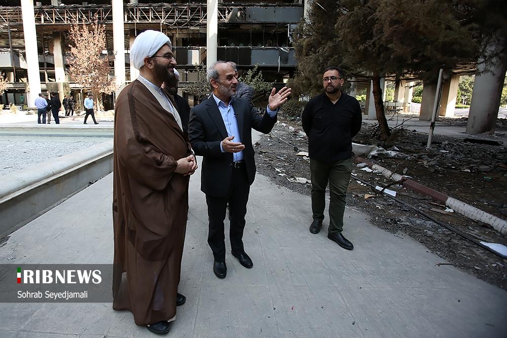 صبح امروز ۶ مرداد ماه ۱۴۰۴ رئیس ستاد برگزاری نماز جمعه تهران و شورای سیاستگذاری ائمه جمعه کشور، حجتالاسلام والمسلمین محمد جواد حاجعلیاکبری و برخی از طلاب و روحانیون با حضور، رئیس رسانه ملی، دکتر جبلی، از ساختمان شیشهای صدا و سیما، بازدید کردند و حمله رژیم صهیونیستی به این مرکز رسانهای ملی را، که هنگام پخش زنده اخبار انجام شد، به عنوان یک جنایت جنگی آشکار، محکوم کردند.
