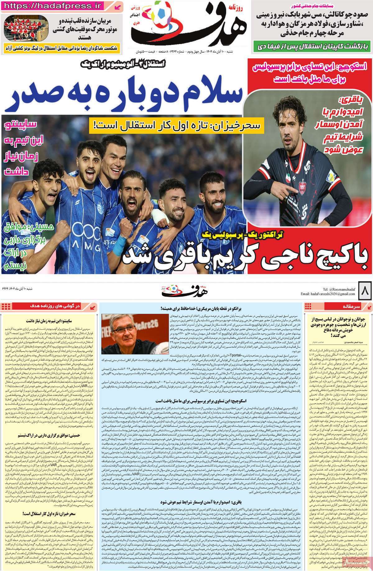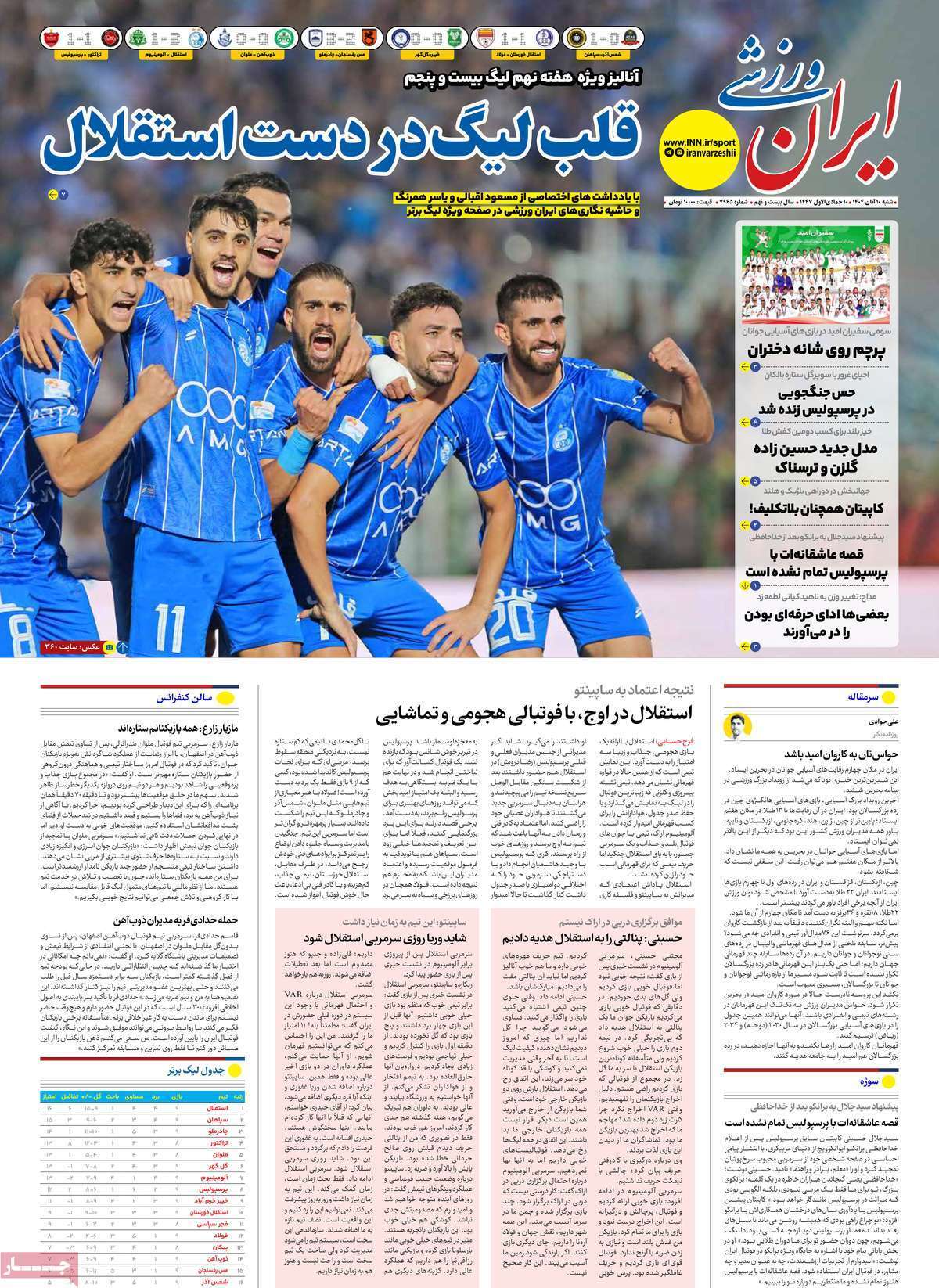 نیم صفحه نخست روزنامه‌های ورزشی ۱۰ آبان